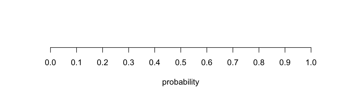 The three different scales are illustrated below. A probability close to 0 is equivalent to a log-odds close to \(-\infty\), and a probability close to 1 is equivalent to a log-odds close to \(+\infty\). A probability of 0.5 is equivalent to a log-odds of 0.